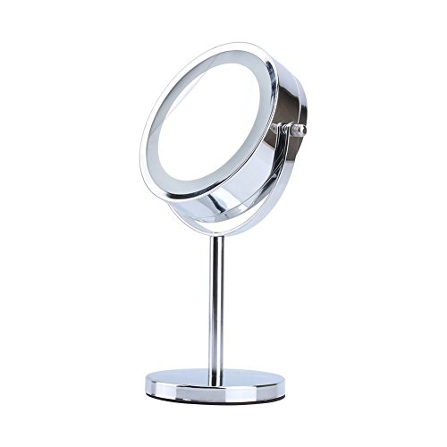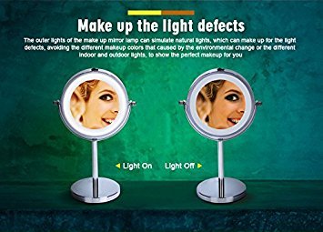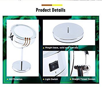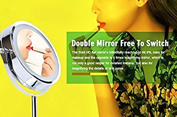 【Double-Sided Mirror】It provides two illuminated mirror faces,double-sided mirror in two magnification: 1x and 5x. The non-magnified side is perfect for doing your hair and grooming. And The 5x magnification side helps you to see the detail of your face which is perfect for applying your makeup.