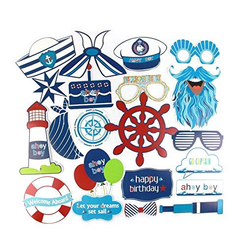 - Package included: 21pcs AHOY BOY Nautical Party Photo Booth Props in one pack