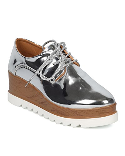 -. Title : Alrisco Women Double Stacked Platform Spectator - Creeper Oxford Shoe - Platform Loafer Wedge - HC99 By Qupid Collection