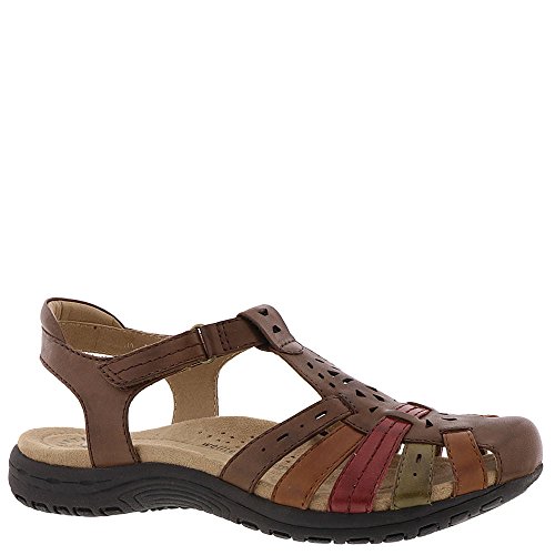 Binding : Apparel Product Description *Take your warm-weather style in the right direction with this T-strap sandal's cutouts and accent stitching *Leather upper *Adjustable hook-and-loop instep strap *Multi-density footbed cushioning with arch support *Rubber sole *1" heel height 0