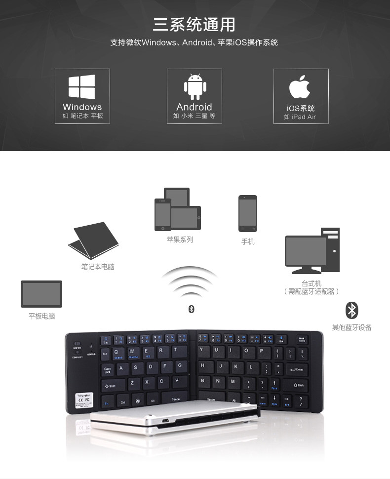 精亚 正品无线蓝牙键盘 超薄win苹果ios安卓mac手机ipad平板通用