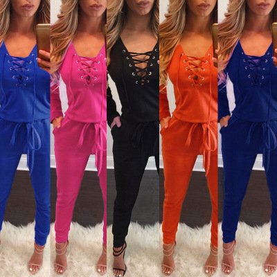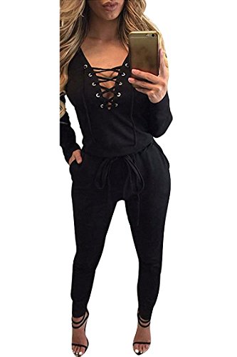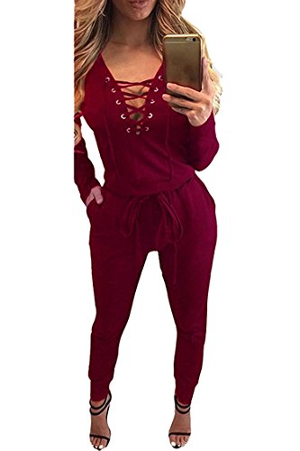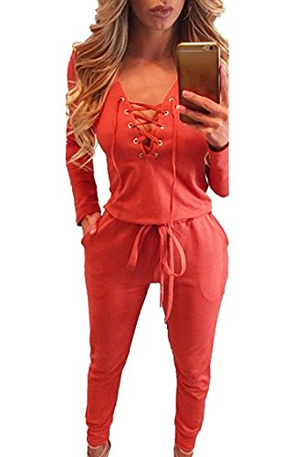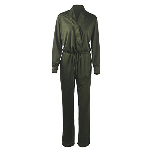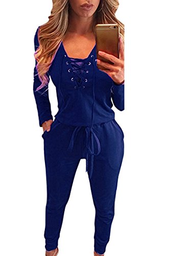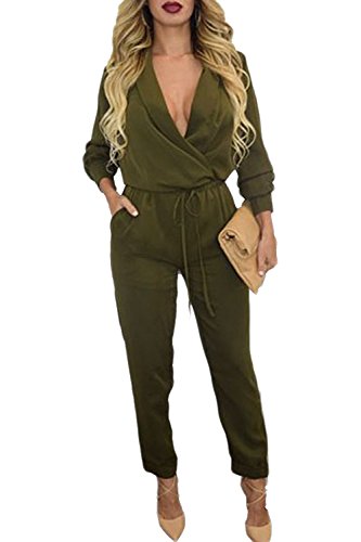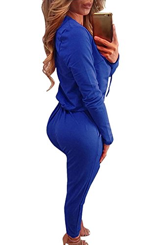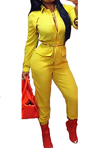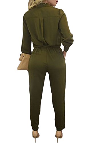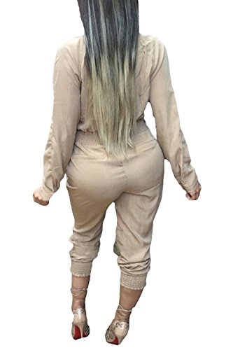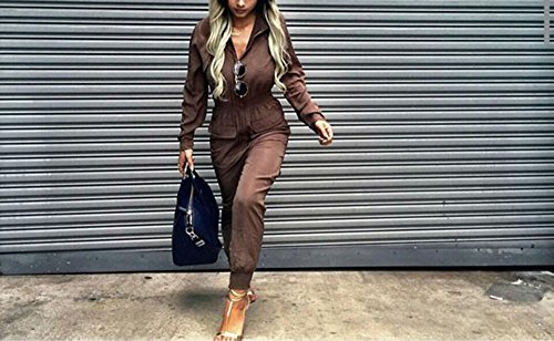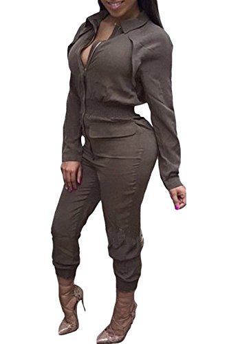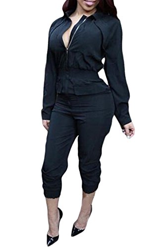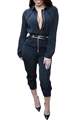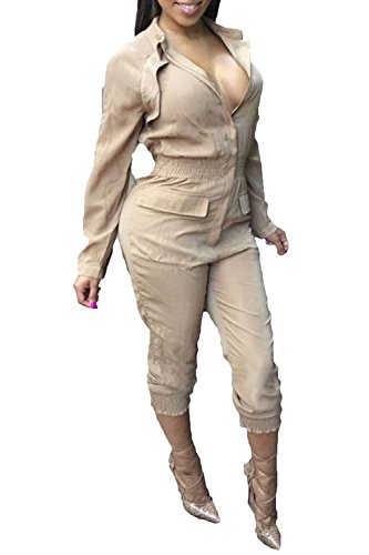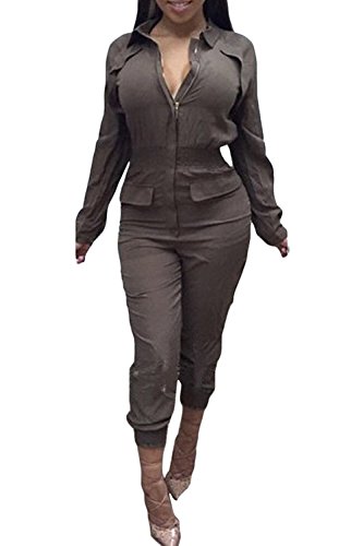 | Women's Stylish Long Sleeve Zipper Turn Down Collar Capri Pant Jumpsuit Overalls |