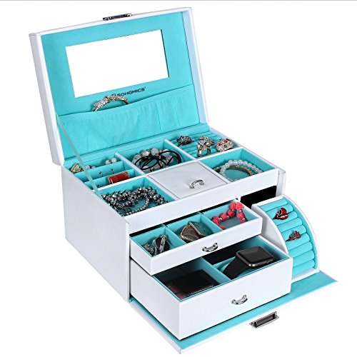 -. Title : Songmics Schmuckkasten Schmuckkoffer Kosmetikkoffer Schmuckkästchen abschließbar mit spiegel Schublade JBC211W