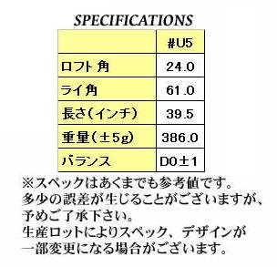 로프트각24°고, 라이각61°고, 길이39.5인치,중량386g,밸런스D0±1