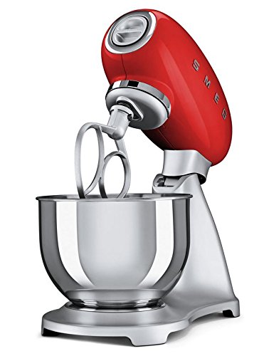 The Smeg 50's retro style will add a pop to any kitchen! With a die-cast aluminum body, zinc-alloy base with stainless steel, bowl lock and stainless steel ball lever, Smeg stand mixers are made to last and will never go out of style.Feature