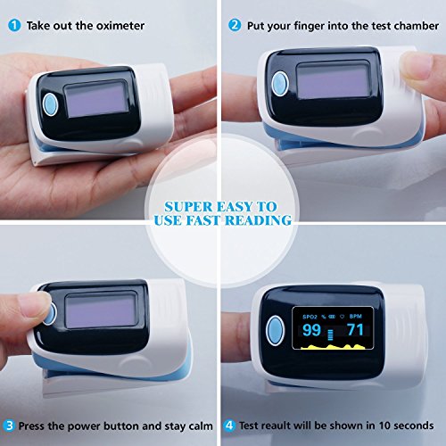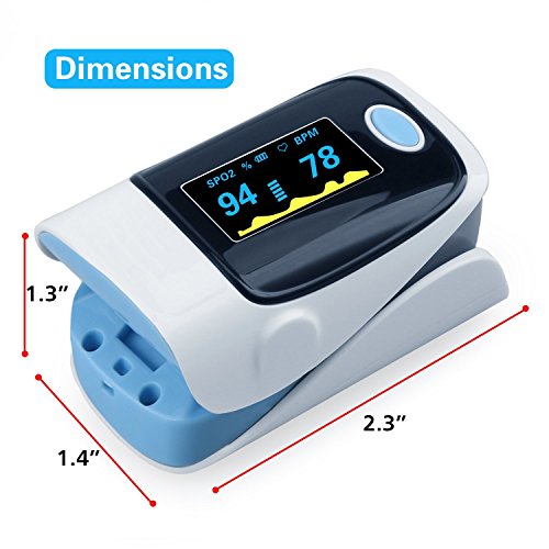 Studio : TOOPONE Publisher : TOOPONE Binding : Health and Beauty Product Description Package includes 1 x Oximeter 1 x Lanyard 1 x User manual Display tape: LCD display SpO2 measurement range: 70%~99% Accuracy: ±2% on the stage of 70%~99% Unspecified(≤70%) for SpO2 Resolution: ±1% PR measurement range: 30BPM~240 BPM Accuracy: ±1 BPM or±1% (the large one) Power: two AAA 1.5 V alkaline battery Demission: 2.3 inch * 1.4 inch * 1.3 inch Operation environment: Operation Temperature: 5℃ - 40℃ Storage Temperature: -10℃~40℃ Air Pressure: 70kPa - 106kPa Note: This fingertip pulse oximeter is for sports and aviation use only, not intended for medical use. Batteries not included. 0