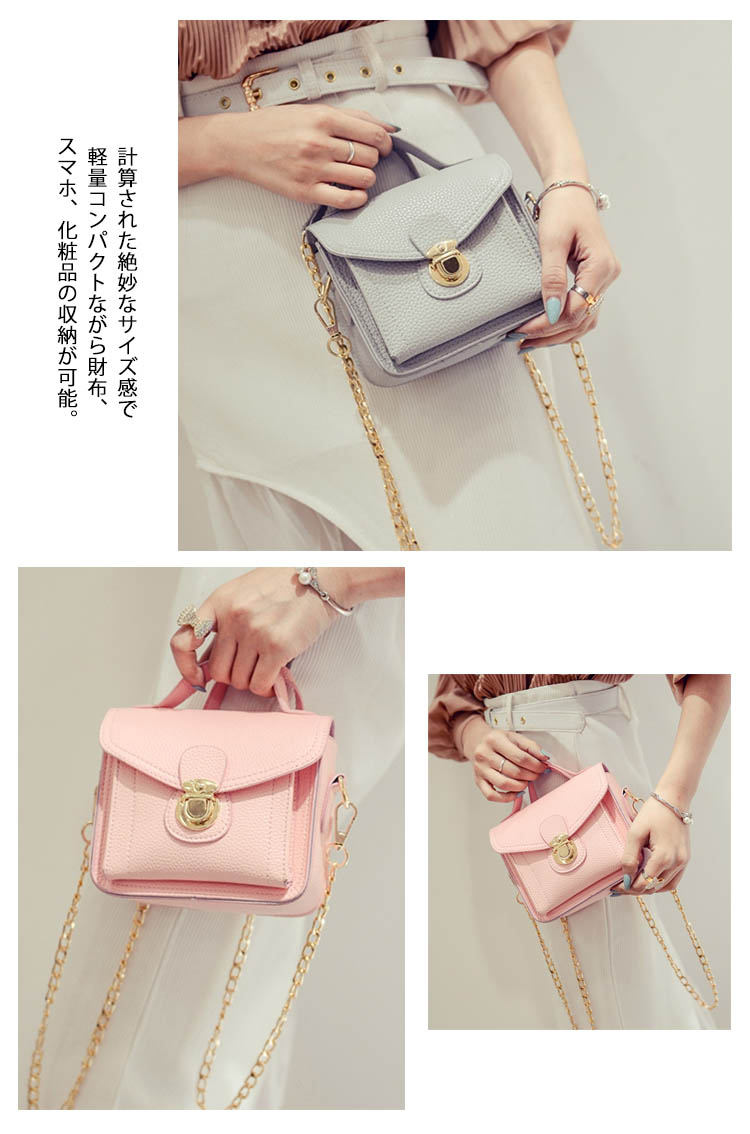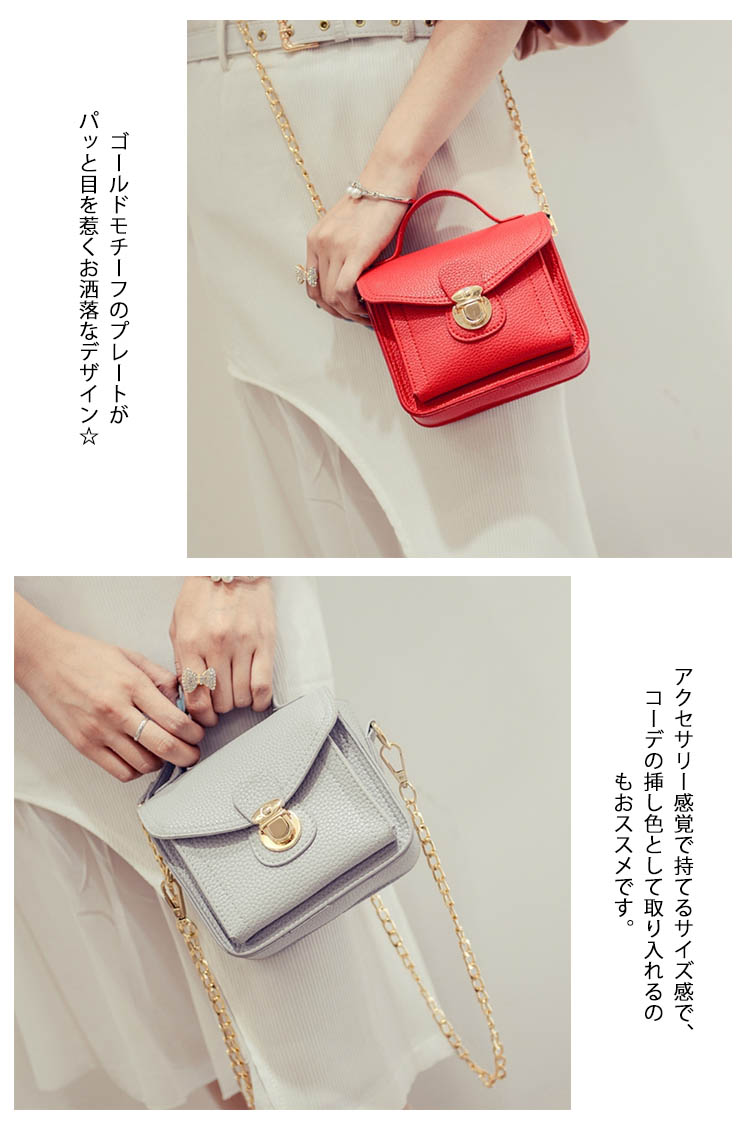 | ころんとしたコンパクトなフォルムが可愛いミニポシェット。ゴールドモチーフのプレートがパッと目を惹くお洒落なデザイン☆アクセサリー感覚で持てるサイズ感で、コーデの挿し色として取り入れるのもおススメです。計算された絶妙なサイズ感で軽量コンパクトながら財布、スマホ、化粧品の収納が可能。さらにショルダー、斜めがけ、クラッチとして使える3wayポシェット。お出掛けスタイルやデイリー使いにもピッタリな万能バッグです。 | |