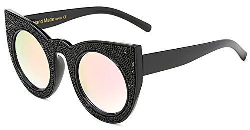 I'M KING Women's Luxury Rhinestone Jewel Retro Oversized Bold Rim Cat Eye Sunglasses