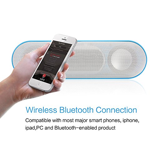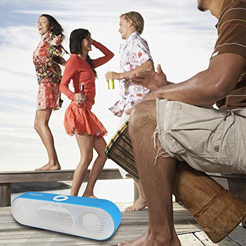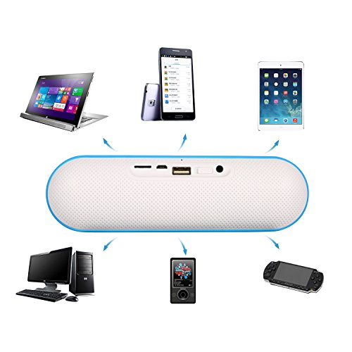-. Feature : The speaker includes 3W dual acoustic drivers and two-channel enhanced bass module to provide strong bass without distortion even at highest volume. / Compatible with most major smart phones, Apple iPhone, iPad, Samsung, laptops and desktops, MP3 & DVD players and Bluetooth-enabled products, set your phone free, answering your calls with a simple button.. / The line-in capability enables you to connect the Bluetooth speakers directly to a non-Bluetooth-enabled device using the 3.5mm audio cable. Equipped with FM Radio, TF Slot, MP3 Player function, Bluetooth and line-in connection feel full functional portable speakers. / Built-in microphone, answering your calls from your phone with one simple key, set your hands free. / Built-in 1200mAH rechargeable lithium battery provides up to 8 hours playtime and can be easily recharged in 2-3 hours.