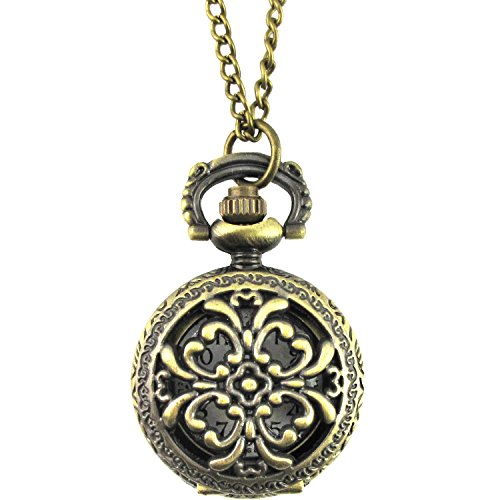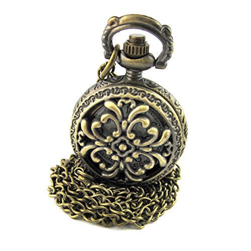 -. Title : YouYouPifa Bronze Engraved Petal Pattern Hollow Small Pocket Watch