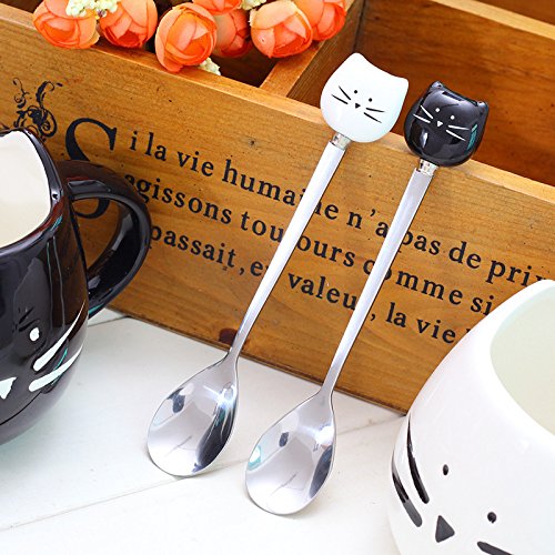 Feb.7 Little Cute Ceramic Stainless Steel Cat Spoon Set for Stirring Tea Coffee Espresso Sugar Dessert Spoons Pack of 2