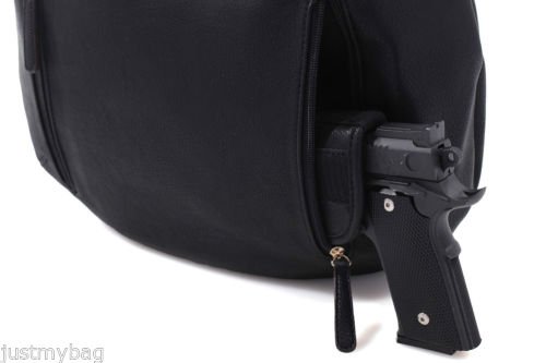-. Brand : Emperiaoutfitters -. Color : Black -. EAN : 0846720091122 -. Feature : Single top carry handles Zipper enclosure Studs and light gold lock decorated on front. Separately concealed compartment on back with 5-zipper-openings for both right and lift hand side carriers Removable holster included / zipper opening is about 7.5"and will conceal weapon such as S&W .38,380,or most 34mm subcompact weapons / Plenty of room for your personal belongings with two separate main compartment / Dimension: 15"L X 6"W X 11.5"H -. Label : Emperia Outfitters -. Manufacturer : Emperia Outfitters -. MPN : Ava -. PartNumber : Ava -. ProductGroup : Shoes -. ProductTypeName : HANDBAG -. Publisher : Emperia Outfitters -. Studio : Emperia Outfitters -. Title : Concealed Carry Purse - AVA Lock Concealed Hobo -. UPC : 846720091122