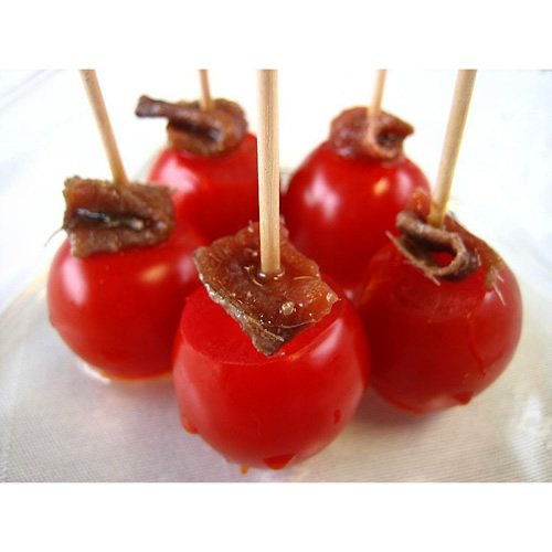 ![]() | おすすめ料理【トマトとアンチョビのピンチョス】 材料(2人前): アンチョビフィレ:3枚 ミニトマト:6個 作り方: (1)アンチョビフィレを一口大にカットする。 (2)ミニトマトのヘタをとりアンチョビと一緒に楊枝に刺して完成。 手軽で簡単、だけど美味しい。イナウディのアンチョビならではの食べ方です。 |