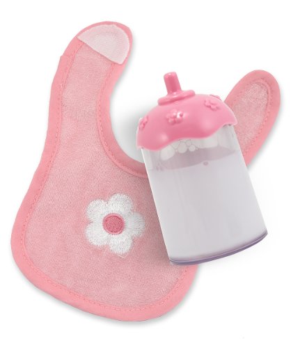 Young parents will be able to take good care of their baby dolls with this charming feeding set. Prepare your baby doll for mealtime by fastening the self-stick, embroidered bib. Little Mommy or Daddy will be fascinated to see the milk disappear from the bottle as baby "drinks" and makes it "all gone"!Feature