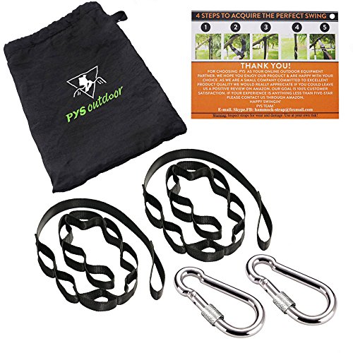 Package Included: Two 5 Foot Swing Straps with 10 Adjustable Loops Two Heavy Duty 304 Stainless Steel Carabiners One Carrying/ Storage Bag One Easy to Follow Instruction Card