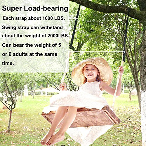 STRONG & SAFE: Due to the high strength polyester we use in our tree swing kits, each strap holds up to 1000 pounds (total 2000lbs). High grade 304 stainless steel carabiners, you can take confidence knowing that your Swing Tie will never rust, fade or be affected by unpredictable weather.