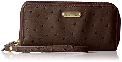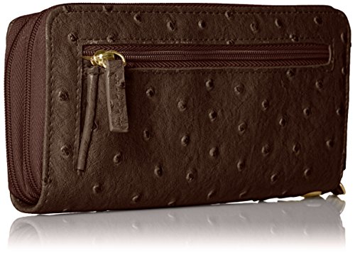 -. Title : Buxton Ostrich Brights Slim Double Zip with Wristlet, Brown