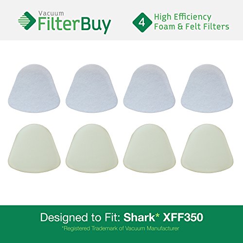 -. Feature : 4 Shark XFF350 filter kits. Each kit includes all 2 foam / felt filters designed to fit Shark Navigator Professional Lift Away Models NV350, NV351, NV352, NV355, NV356, NV356E, NV357, and UV440. / Manufactured by FilterBuy to replace Shark Part # XFF350. / Kit includes 1 triangular pad filter and 1 felt triangular filter. / Premium Allergen Filter Designed by FilterBuy in the USA. / FilterBuy: Breathe Better!