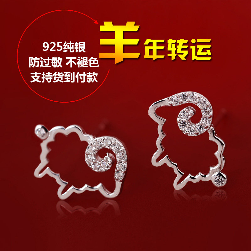 七夕恋人 生肖本命年小羊耳钉925纯银饰品韩版女开运时尚可爱耳环
