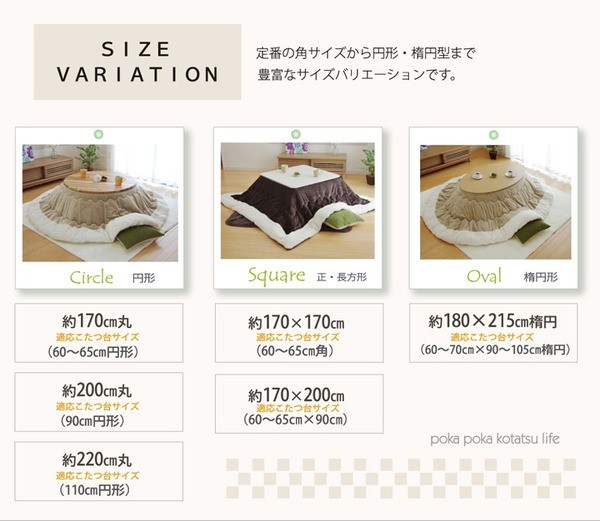 【適応サイズ】60~65cm丸のこたつ台に適応。