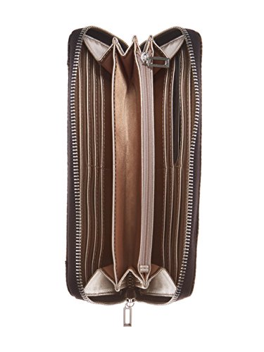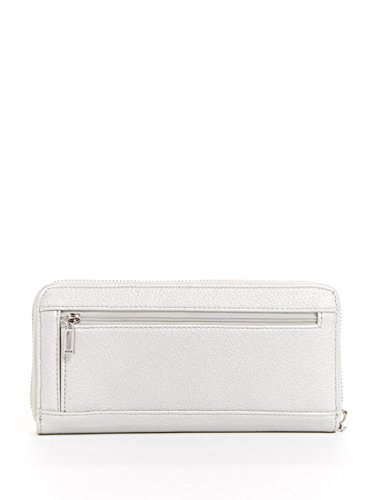 Product Description A metallic design makes this zip-around wallet the perfect on-the-go essential. Features removable wristlet strap and zipper pocket at back. 0