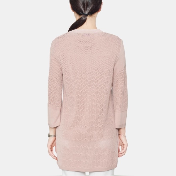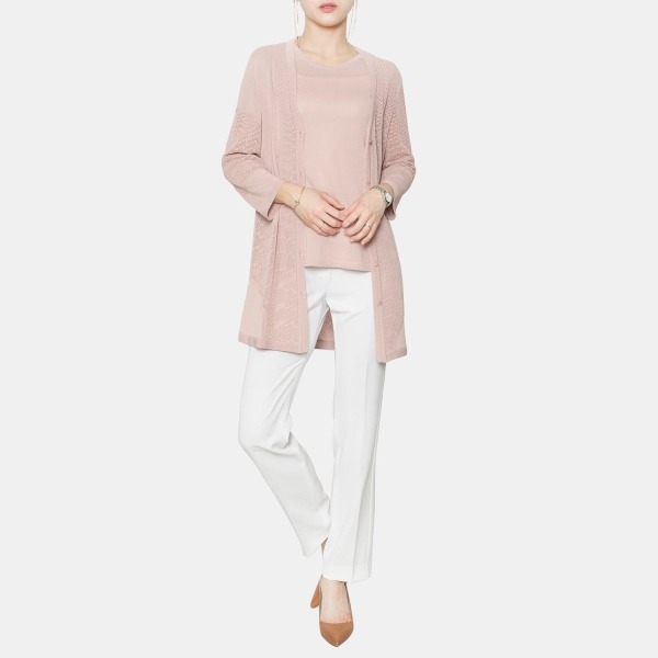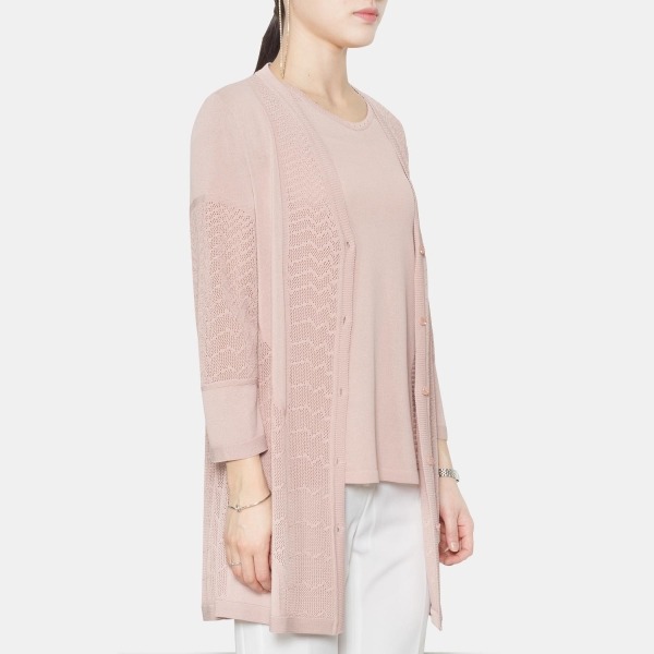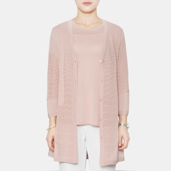 시즌감이 느껴지는 니트 조직감이 돋보이는 가디건입니다. 부분마다 들어간 다양한 니트 조직감이 포인트가 되며, 좋은 통품성으로 쾌적한 느낌이 기분 좋은 아이템입니다.