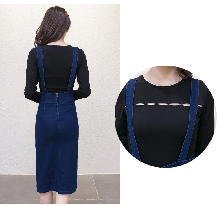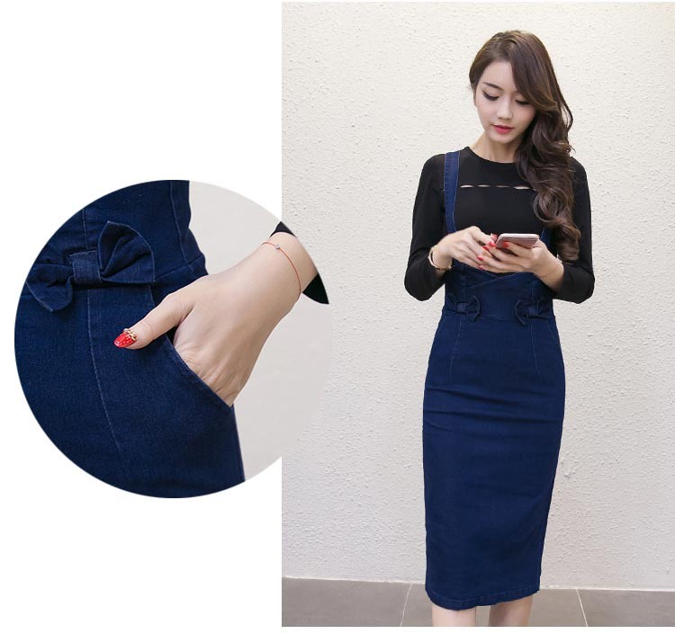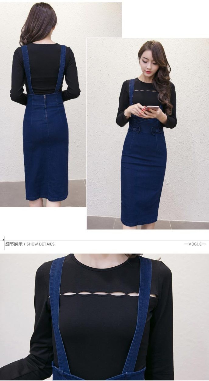 ストラップデザイン・後ろファスナー・デニム素材のタイトスカート♪