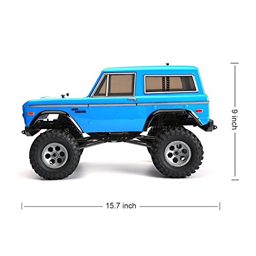 Feature: Full ball bearing through vehicle Multi-link suspension allows smooth crawling Full lock front and rear axle 3-gear center mounted transmission gear box with low center gravity motor mount Telescopic UJ drive shaft for maximum durability Axle mounted steering servo Realistic detail scale body with decal include Oil filled shock Water proof electronics allow you to have fun with it anytime anywhere Aluminum anodize suspension link and steering hub for maximum strength Ready to Run out of the box with battery and charger included ( charger battery NOT included) 3 Inch ground clearance that can go through any obstacle Realistic front and rear composite bumper with LED light mount ready Multi-link suspension system with aluminum anodize suspension link and telescopic UJ drive shaft as standard 3-gear center mounted transmission gear box with low center gravity motor mount 2 in 1 water-proof high output 40A electronic speed control with receiver build in 3kg water-proof standard size servo with aluminum body for better heat resistance Adjustable battery mount to fit difference size of battery