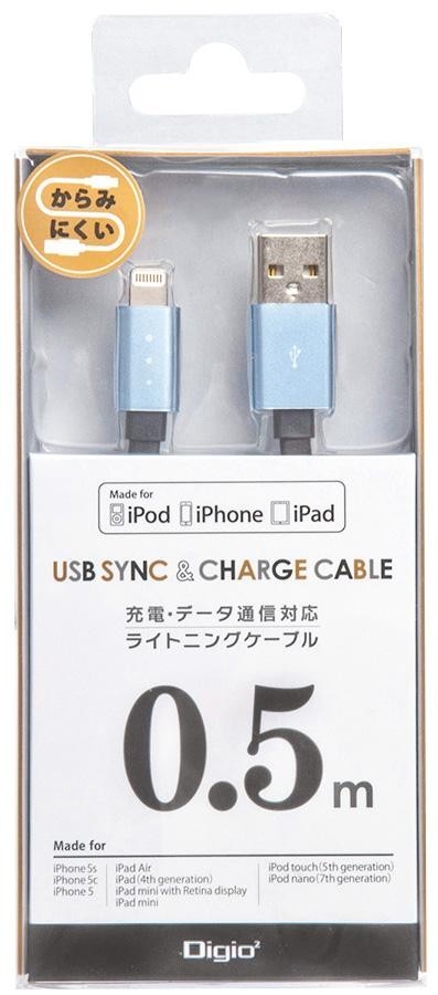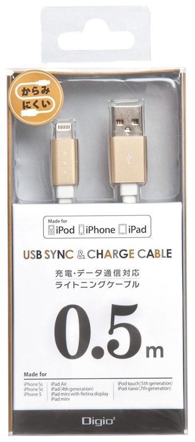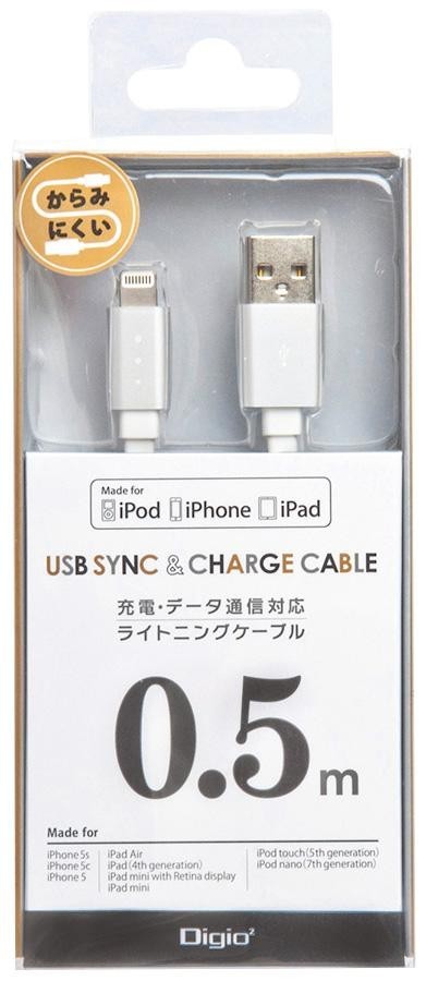 Apple社Lightningポートを搭載したiPhone、iPad、iPodに対応する充電・データ通信ケーブルです。からみにくいフラットケーブル採用。安心のライセンス商品です。 |