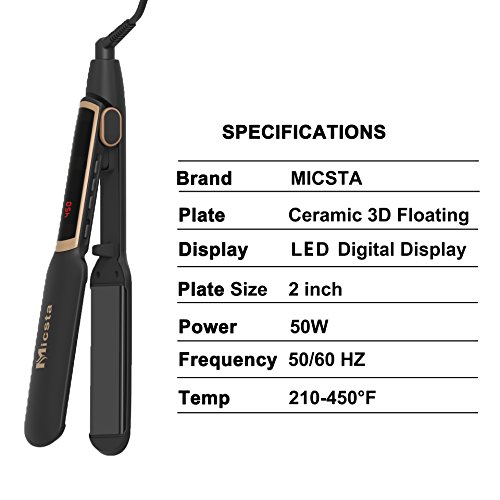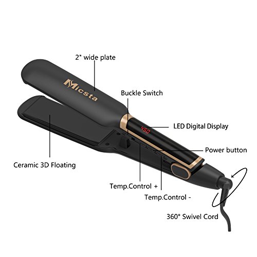 Micsta Hair Straightener Flat Iron 2 Inch with Wide Floating Plates, Digital LCD Display with Adjustable Temperature 210°F - 450°F Salon High Heat, Straightening...