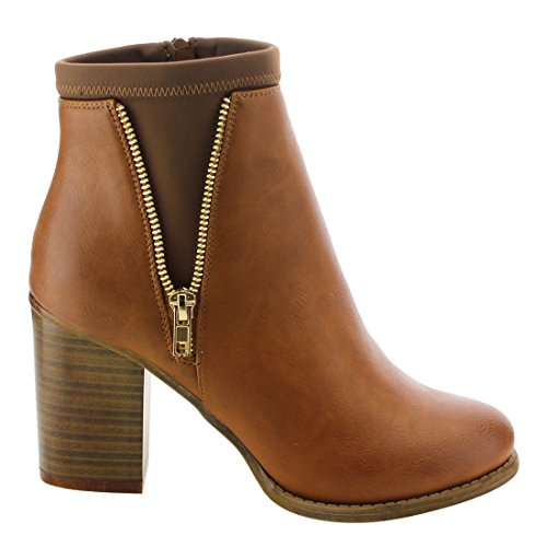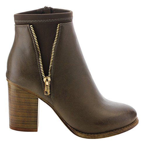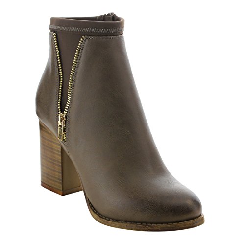 NATURE BREEZE EK43 Women's Side Zipper Chunky Stacked Heel Ankle Booties