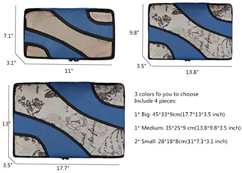-. Brand : Butmoon -. Department : unisex-adult -. Feature : 5 Set Packing Cubes : 1* Big: 45*33*9cm(17.7*13*3.5 inch) 1* Medium: 35*25*9 cm(13.8*9.8*3.5 inch) 2* Small: 28*18*8cm(11*7.1*3.1 inch) ,and one bag for dirty clothes / Techlite Diamond Nylon,Mesh Top Panel For Easy Ventilation And Identification Of Contents. / Please allow the chromatic aberration and dimension error / Different size packing cubes can separate your different things to save your clothes from stains, wrinkles and damages / packing for a trip is fitting everything you want to bring with you into your lage -. Model : BOS004 -. ProductGroup : Apparel -. ProductTypeName : LAGE -. Title : Butmoon Lage Packing Travel Organizers ,4 Set Packing Cubes