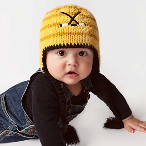 -. Binding : Apparel -. Brand : Huggalugs -. Color : Yellow -. Department : baby-boys -. Feature : This golden yellow striped earflap beanie hat with black poms features two black crossed hockey sticks and a puck. / Discover all the spirited and clever designs that keep pint sized hipsters looking so cool, yet feeling so darn huggly-cuddly warm. / Great baby gift idea! / Perfect for dress-up, playtime, holidays and makes a great photo prop! / Hand knit in soft acrylic yarn with cotton jersey lining -. Model : 826 -. NumberOfItems : 1 -. PackageQuantity : 1 -. ProductGroup : Apparel -. ProductTypeName : HAT -. Title : Huggalugs Baby and Toddler Boys Hockey Beanie Hat