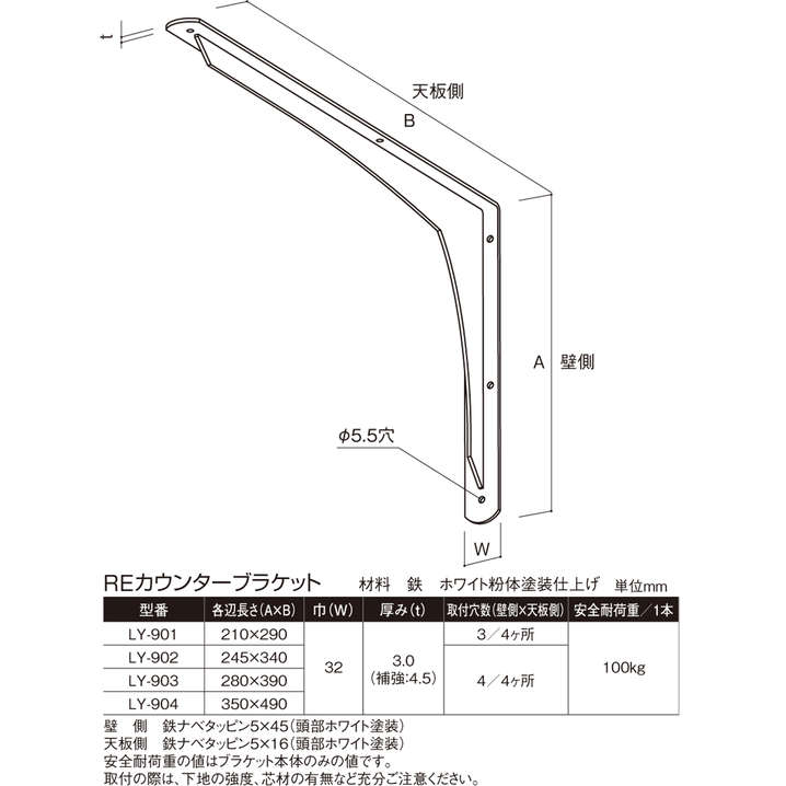 ●スマートなデザインなので設置場所にすっきり収まる棚受です。補強の出っ張りが少ないのでスペースを有効に使うことができます。安全耐荷重の値はブラケット本体のみの値です。 取付の際は、下地の補強、芯材の有無など十分ご注意ください。