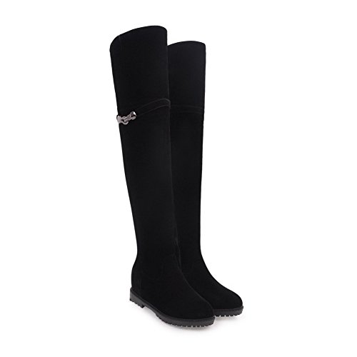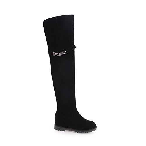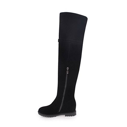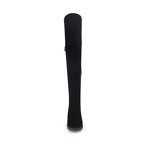 (BalaMasa)/Women's/Boots/DIRECT FROM USA/BalaMasa Womens Kitten-Heels Solid Above-The-Knee Above-The-Knee Suede Boots ABL09847