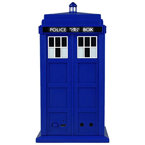 -. Author : Massive Audio -. Binding : Paperback -. Brand : Massive Audio -. EAN : 0623169670008 -. Feature : That wireless Bluetooth speaker looks just like a TARDIS! Meticulous craftsmanship and incredible sound quality. Sound clips include Materialize, Dematerialize, Cloister Bell, Flight, and Turbulence! / Top LED flashes and the Police Box sign illuminates! Perfect for Doctor Who collectors and audiophiles alike. Wireless Doctor Who speakers! / This Doctor Who TARDIS Wireless Bluetooth Speaker will seamlessly pair with most any Bluetooth device. It features meticulous craftsmanship and incredible sound quality, making it highly desirable to collectors and audiophiles alike. The easy-to-use interface allows for an array of control options, while LED indicators let you know when you power the device on and when you're connected. / Six different sound clips are programmed to indicate connection and activity! Made of super-rigid ABS, the TARDIS measures about 8 1/2-inches tall x 4 2/5-inches wide x 4 2/5-inches long. For ages 6 and up. Features and Specifications: - USB-rechargeable lithium-ion battery - Sound clips: Materialize, Dematerialize, Cloister Bell, Flight, and Turbulence - The top LED flashes soft blue when powered On/Off. / - The Police Box sign illuminates when connected to a device. -. Label : Massive Audio -. Manufacturer : Massive Audio -. ManufacturerPartsWarrantyDescription : 1 Year replacement -. Model : MT40 -. MPN : MT40 -. PackageQuantity : 1 -. PartNumber : MT40 -. ProductGroup : Network Media Player -. ProductTypeName : PORTABLE_AUDIO -. PublicationDate : 2012 -. Publisher : Massive Audio -. Studio : Massive Audio -. Title : Doctor Who TARDIS Wireless Bluetooth Speaker -. UPC : 623169670008