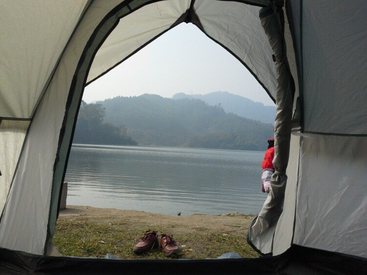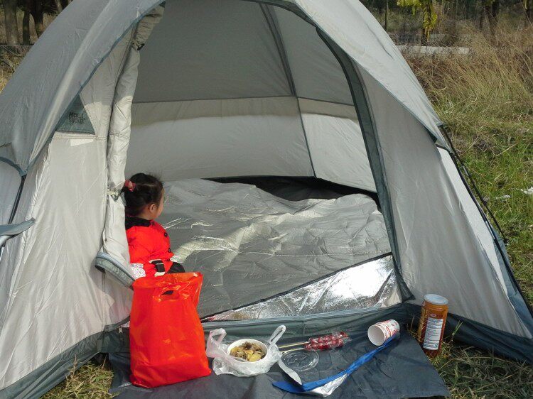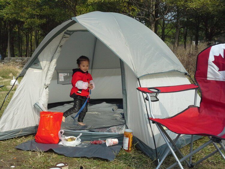 The upper half of the door there gauze ventilation, the left door of the "wire mouth," if conditions permit, you can put the lights, fans, computers and other small household appliances moved into the tent to use.