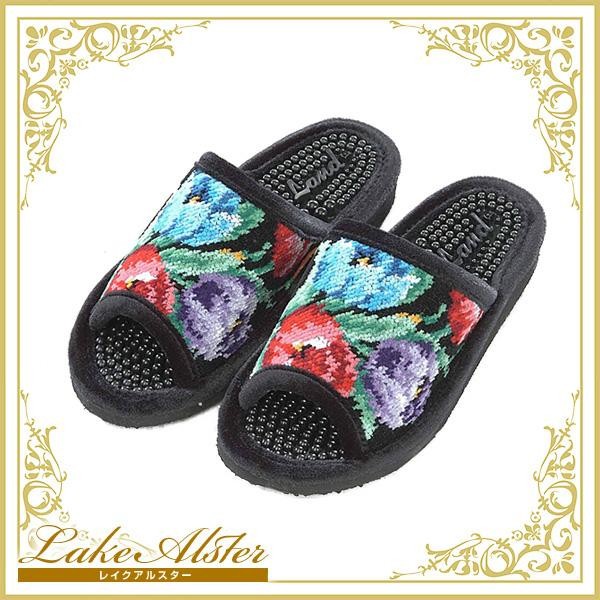 底の刺激はひかえめ。プレゼントにもおすすめです。 製造国:日本 素材・材質:柄部分:綿(シェニール織) 重量:約300g 仕様:【サイズ】フリー(22~23.5cm) ※サプライヤー直送品 ご注文後3~4営業日後の出荷となります【商品名】LAKE ALSTER レイクアルスター ケンコウサンダル 21017138 チューリップ・ブラック02