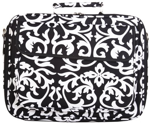 -. Title : World Traveler Black and White Damask 15-inch Computer Laptop Case Bag