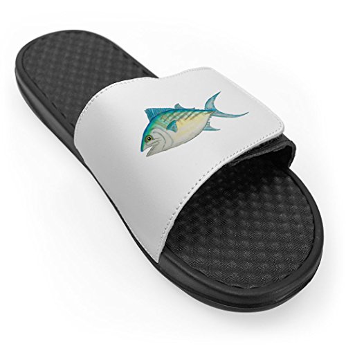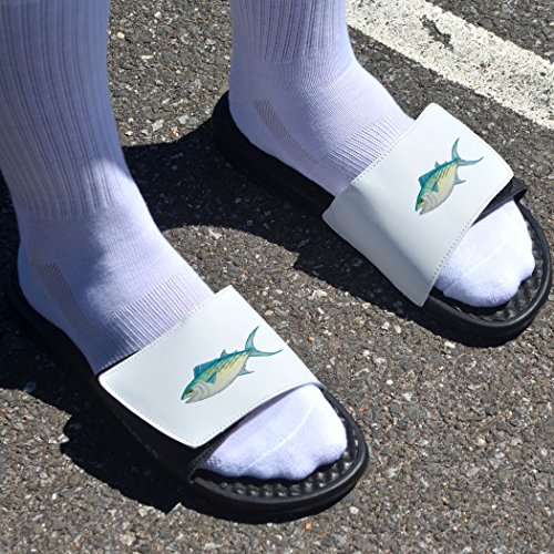 Studio : ChalkTalk SPORTS Publisher : ChalkTalk SPORTS Binding : Apparel Product Description Our white fly fishing slide sandals are a great way to show your love for the sport in a comfortable pair of sandals with a light massaging cushioned sole. The stylish sandals have an original design custom printed on the adjustable VELCRO® strap and are water-resistant and lightweight, making them ideal for summer and spring activities and as everyday slide sandals. 0