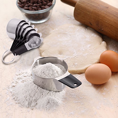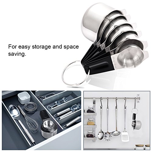 - 【Save Space, Dishwasher Safe】Nesting design for easy to store in your kitchen drawer or cabinet. The removable chain holds the stainless steel measuring cups together to hang it easily.