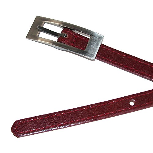 Studio : Landes Publisher : Landes Binding : Apparel Product Description A skinny leather belt that measures just over half an inch wide. Tone on tone edge stitching is featured, as well as a satin nickel center bar buckle. Functional and fashionable with its professional appearance. The belt is sold in inches that are measured from where the buckle connects to the center prong hole. 0