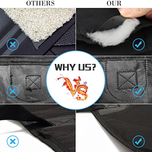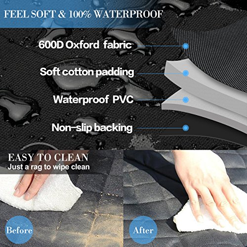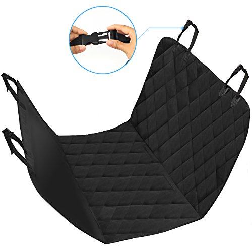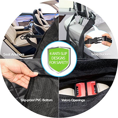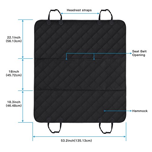 -. Feature : Durable 4 Layers: 600D Oxford Fabric + A grade PP Cotton + Waterproof Polyester + Anti-Slip PVC net, all the heavy duty material reinforce the dog seat cover, keep the pet seat cover in place even on leather seats and help your dog stay in place cozily. / Keep Your Seat Clean: With durable material, the cover protects the back seat from scratches, dirt, spills, dander and other messes while make your pets feel comfortable as the PP cotton is filled in 2 sides. Enjoy the pleasure of the trip with your lovely pets. / Anti-slip Design: The PVC bottom makes the cover slip-proof, the seat anchors keep the seat cover stay in place, the Velcro opening provides option to fasten the seat belt for your dogs, all the great design guarantee the safety of your pets while keep them feel free in the car. / Easy to Install: Install the pet seat cover in minutes with quick release clips. Insert the seat anchor to the crevice to fasten the seat cover, 4 sets of adjustable plastic clips that attach around the headrest in the front and the back to fix cover seat firmly. / Wide Application: The car seat cover is suitable not only for dogs, cats and other pets, but also for kids. 54" x 58" dog seat cover is great to be used in different vehicles such as cars, trucks, SUVs and more. Just install the cover on your backseat, and let the pets enjoy the trip on the road with you while feel comfortable and free.