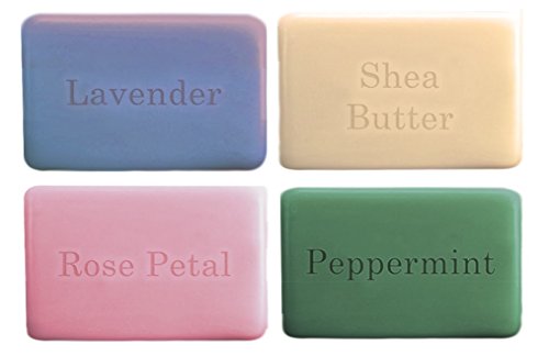 One With Nature Naked Soap with Dead Sea Minerals, Argan Oil & Shea Butter 4 Fragrance Bundle: Lavender, Shea Butter, Rose Petal and Peppermint (4 Ounces Each)