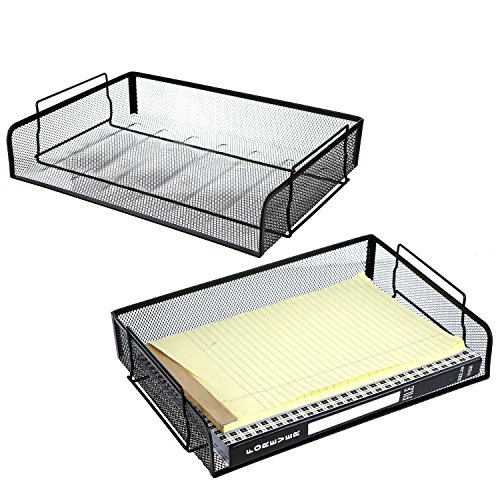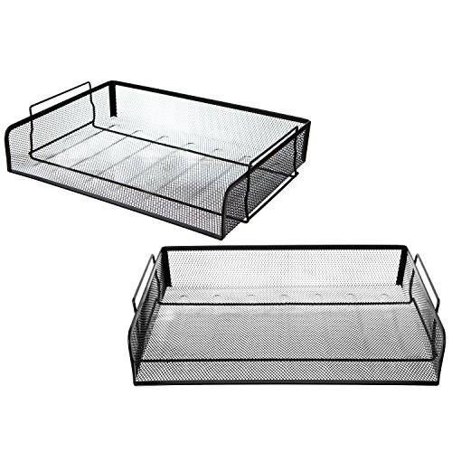 Set of 2 Black Mesh Wire Stackable Document Trays, Folder Letter Racks