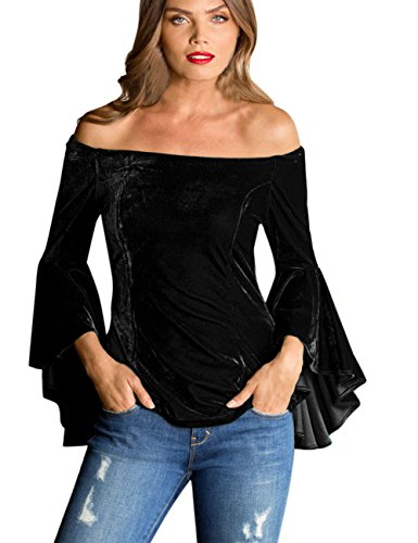 (NarZhou)/Car Vehicle Electronics/Vehicle Electronics Accessories/DIRECT FROM USA/NarZhou Women Ladies Sexy Trendy Velvet Off The Shoulder Bell Sleeve T-Shirt Blouse Tops On Sal...