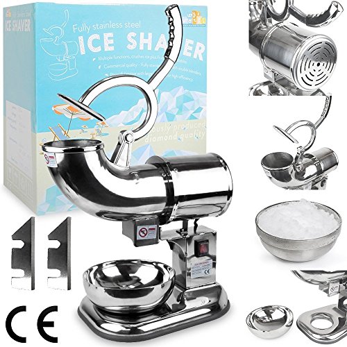 Extra High Working Efficiency: Highly efficient motor can produce 440 lbs of shaved ice per hour; Dual stainless steel blades help shave ice completely and easily
