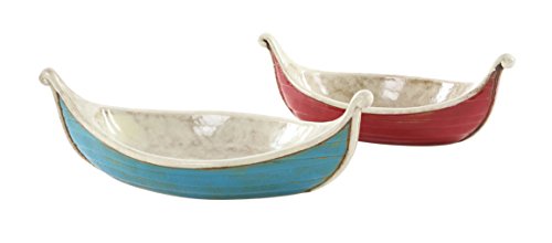 Deco 79 56761 Ceramic Boat-Shaped Decorative Bowls (Set of 2), White/Brown/Blue/Red