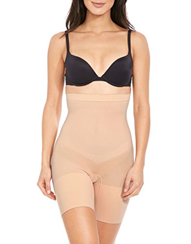 High-waisted SPANX shorts with a slimming tummy panel and ruched back seam. Smooth fabric creates a seamless look, and double-layered panels smooth the thighs.