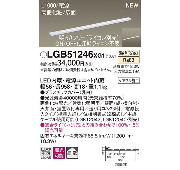 ●光源:LED(内蔵、温白色タイプ)、色温度:3500K、光源寿命40000時間(光束維持率70%)
